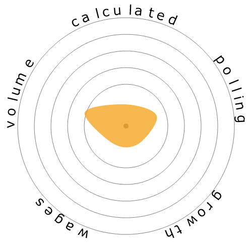 The Snowflake is a visual summary of the five badges: Automation Risk (calculated), Risk (polled), Growth, Wages and Volume. It gives you an instant snapshot of an occupations profile. The colour of the Snowflake relates to its size. The better the occupation scores in relation to others, the larger and greener the Snowflake becomes.